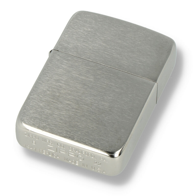 Zippo 1941 Replica The 1941 replica has several distinctive characteristics to distinguish from a modern Zippo lighter, the flat plane case has less rounded edges, distinctive rounded corners on the lid, a 4-barrel hinge as opposed to the 5 barrel lid of modern Zippos, it also has the replica insert from the original design