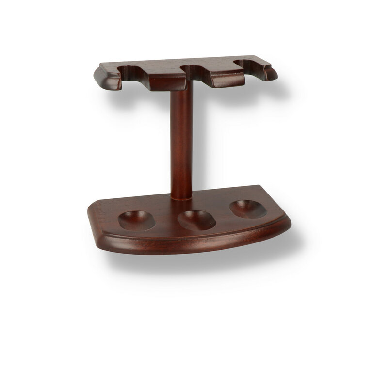 Solid Wood Chrome Pillar Pipe Stand Finally, a rack that the missus will let you display on her mantelpiece! Not even the most stubborn other half can deny these are worthy for displaying on the mantelpiece! These racks are remarkably well finished for the price, made from solid wood with space for 3 pipes.