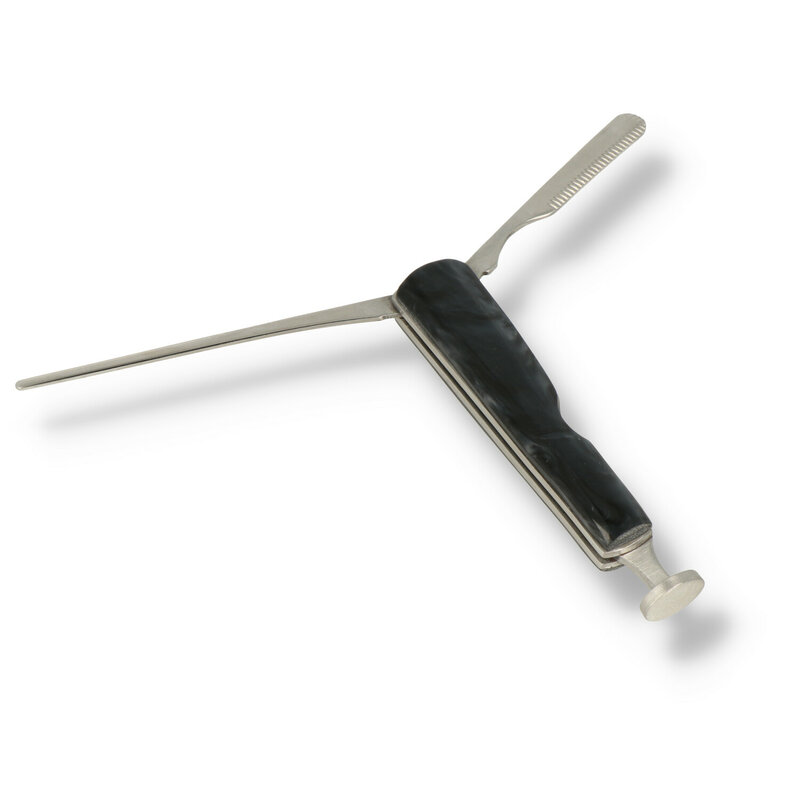 This handy little pipe tool is an essential tool for every pipe smoker. A fold up tool with all the essential bits for pipe smoking on the move.