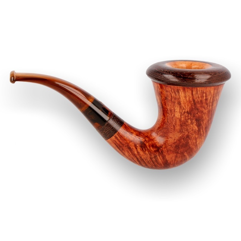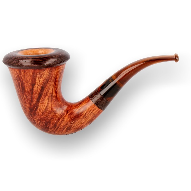 Paronelli Design 02 Calabash: The Paronelli Design are the most prestigious pipes to come out of the Paronelli factory. The finest blocks from the plateaux area of the root are reserved for the production of the Design range and once carved they are graded according to the final grain pattern and quality with very few achieving the design stamp. A stunning flame grain ecompasses the bowl before being finished with a tiger oak surround and band. The pipe is beautifully balanced and very comfortable in the hand. It has nice thick walls and a deep bowl making it very heat resilient and a perfect partner for a fireside smoke.