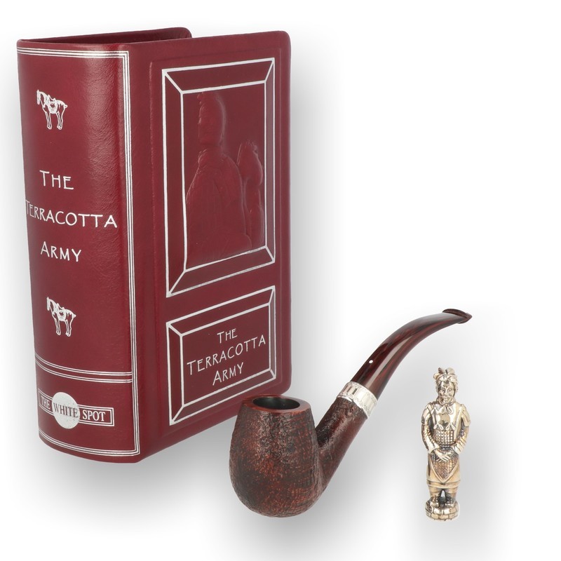 Dunhill White Spot Chinese Terracotta Army Collector's Pieces: The Terracotta Army pipes have been created and manufactured as limited edition pipes inspired by one of the greatest archaeological revelations of all times, the Terracotta Army is a collection of life-sized Terracotta sculptures buried in a tomb-mound in 210 BC to represent the army of Emperor Qin Shi Huang Di. A group of local farmers discovered this "spirit" army on the 29th March 1974 in Xi'an, Shaanxi, China. The main part of the Terracotta Army is arranged in three giant pits, containing more than 8,000 soldiers, 130 chariots, and 670 horses. It is believed that each soldier's face is unique.