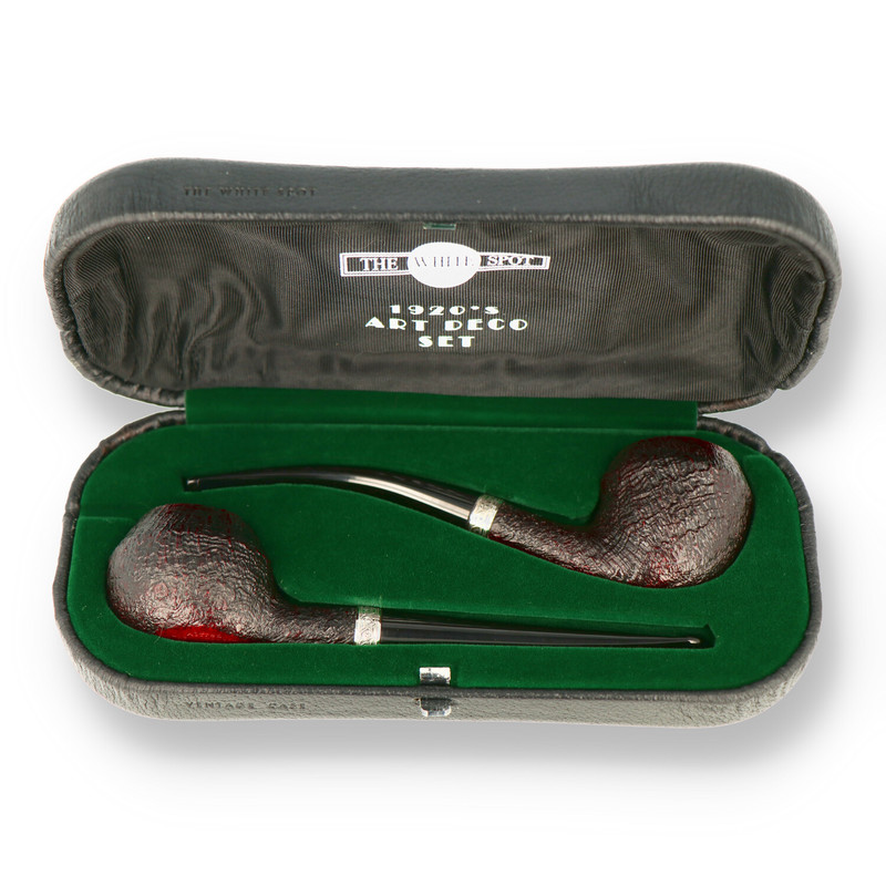 1920's Art Deco Pipe Set Art Deco is a style of design, architecture and art that first appeared in Paris just before the first world war. It was in the mid 1920's, when Art Deco had become the established design style, when Alfred Dunhill published the fifth edition of his comprehensive product catalogue About Smoking - An Encyclopedia of Smoking containing a variety of products, both pipes and accessories, designed in the prevalent Art Deco style. This is where the pipe shapes from this set have been re-discovered. The shapes are extremely elegant, perfectly embodying the style. Both shapes have not been manufactured for at least 30 years.