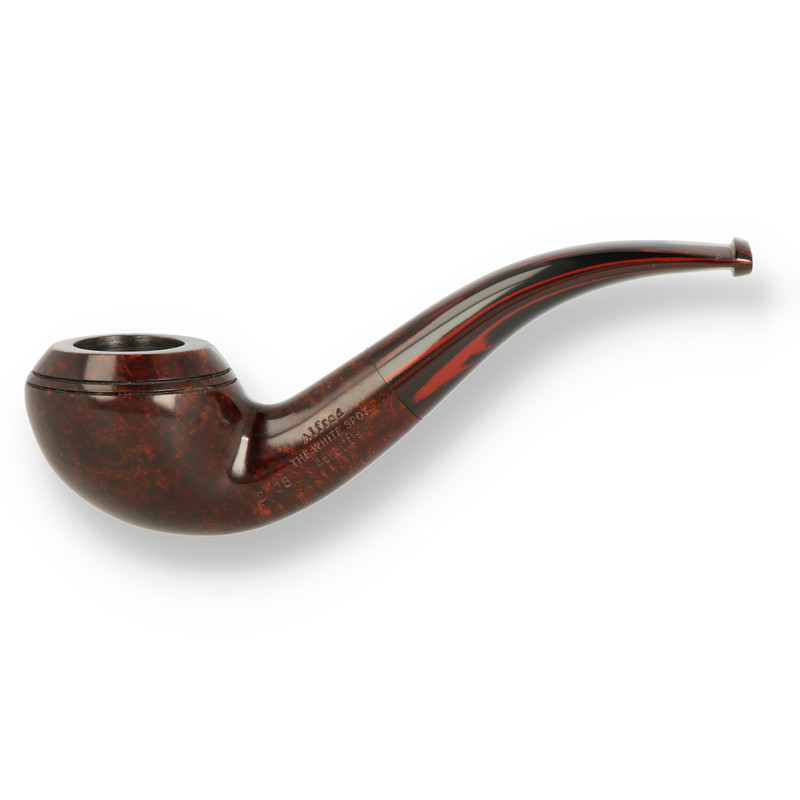 Alfred Dunhill White Spot In 1915, the famous white spot was introduced for very practical concerns. With straight pipes, customers had trouble knowing which way to insert the handmade vulcanite mouthpieces. So Alfred Dunhill ordered white spots to be placed on the upper side of the stem. This very practical solution would become a definitive trademark of Dunhill pipes. The “white spot” soon became known as a symbol of quality.