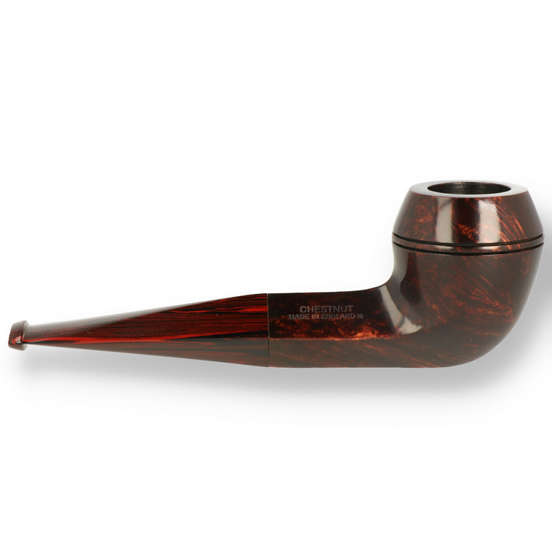 Chestnut Briar Pipes Introduced in 1983 to commemorate the closing of the Cumberland Road warehouse. Dunhills darkest walnut stain is used to great effect. Similar to the Cumberland stain but the Chestnut range are smooth bowls. A great deal of skill and craftsmanship goes into the creation of each pipe, with each block of briar going through a painstaking process of 90 different stages before finally being given the white spot.