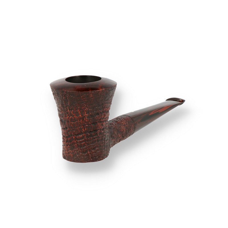 Cumberland Briar Pipes The Cumberland finish was first introduced in 1979. The pipes are sandblasted with a brown stain and had a brindled, vulcanite stem. Originally, the Cumberland always featured a smooth brown rim, but in the current production the rim is sometimes smooth, sometimes sandblasted. Occasionally, a straight grain blast is finished with a Cumberland stain and a “Shilling Grain,” similar to the “Ring Grain,” resulting in a new variation on the traditional sandblast. The Shilling series is named for the British coin: the sandblast looks like a stack of shillings. Named after the warehouse on Cumberland Road. The old pipes that inspired this finish were found there.