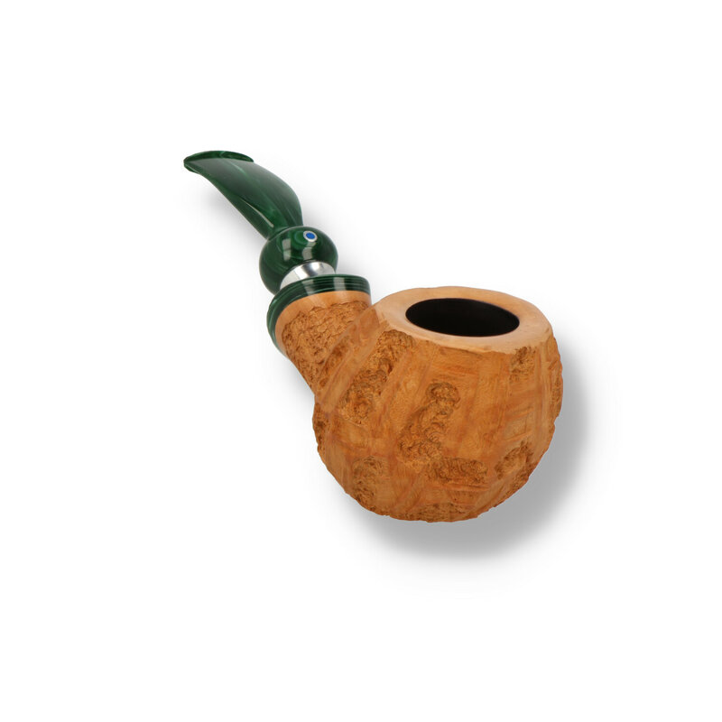 Ardor Meteora 3119 The Ardor Meteora is another stunning pipe from their fantasy collection. Taking inspiration from a meteor. This pipes stunning grain and unique design lines are a testament to Ardors incredible design skills. The beautifully curved shank is finished with a pearlescent green band and stem accented with a concave chrome band.