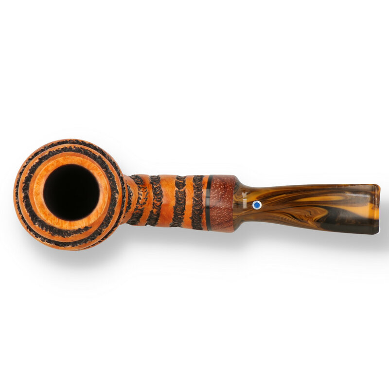 Ardor Tabacco 3062 This Apple shaped bowl with stunning design lines is finished in a light natural stain with a unique rusticated spiral around the bowl and shank, the wooden band coupled with the caramel cumberland stem is a stunning example of Ardors workmanship.