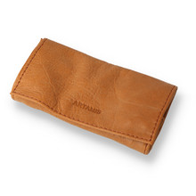 The Artamis PO25CBR Tan pouch is a mid sized roll up design and is the style of tobacco pouch most recommended by The UK Tobacco Specialist Tobacconist for it's simplicity and effectiveness. When rolled out the pouch provides a 110mm x 130mm platform for making cigarettes on with a paper dispenser conveniently located under the tobacco compartment. The way the pouch is then rolled up and placed in the pocket expels any air and forms an efficient seal preventing the tobacco from drying out. There are press studs to hold the pouch closed and the tobacco compartment easily holds up to 25g (or 1oz in old money) of tobacco. Then just to be that little different Artamis have left the Leather in natural tan colour rather than staining it, which highlights the beautiful graining in the Leather.