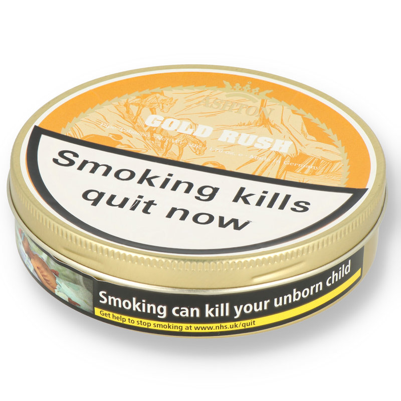 Ashton Gold Rush Pipe Tobacco The Ashton Gold Rush Pipe tobacco is a pure Virginia blend made of only the most outstanding Virginia tobaccos. Medium bodied and smooth, this mixture burns beautifully and renders a natural aroma accentuated by traces of lemon and honey.