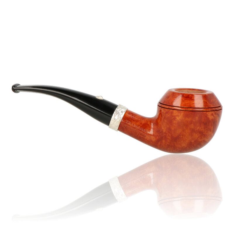 Barling Trafalgar The Very Finest 1819 The Barling Trafalgar 1819 "The Very Finest" is a classic English curved Rhodesian made from, you guessed it, The very finest briar blocks. Only the best of the best make it, as the pipes are sanded and given a light natural stain which leaves no space for covering up blemishes and imperfections. Each pipe comes with a hammered nickel band and the classic lions head metal inlay on the stem. The name is a tribute to Trafalgar Square, just half a mile from Golden Square where Benjamin Barling first registered as a jeweller in 1820.