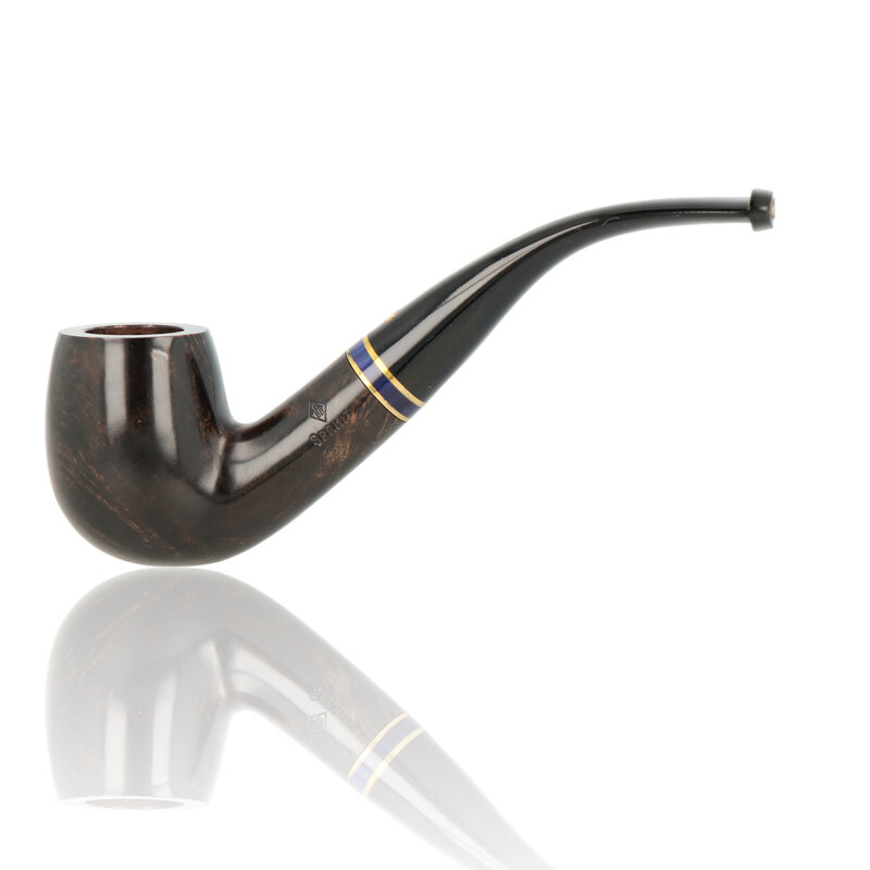BBB Sprint Blue The BBB Sprint Blue is a classic bent Apple, with a tapered stem. The bowl is finished in a unique deep brown with a hint of blue, which compliments the rich Brass and blue bands in the stem. It is a good sized pipe with fairly thick briar walls to help prevent overheating while the modest overall dimensions help keep the weight down. The bore is smaller than you would expect for a pipe of this size, which is good for those who don't want a full bodied smoke hour long smoke. The pipe is filtered with the metal condensing style filter system.