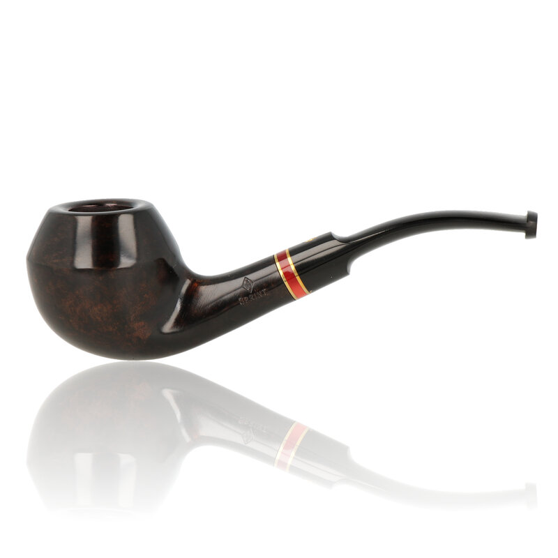 BBB Sprint Red This BBB Sprint Red 3 is a classic Rhodesian with a saddle stem. The bowl is finished in a unique deep brown with a hint of grey, which compliments the rich Brass and red bands in the stem. It is a good sized pipe with fairly thick briar walls to help prevent overheating while the modest overall dimensions help keep the weight down. The bore is smaller than you would expect for a pipe of this size, which is good for those who don't want a full bodied hour long smoke. The pipe is filtered with the metal condensing style filter system.
