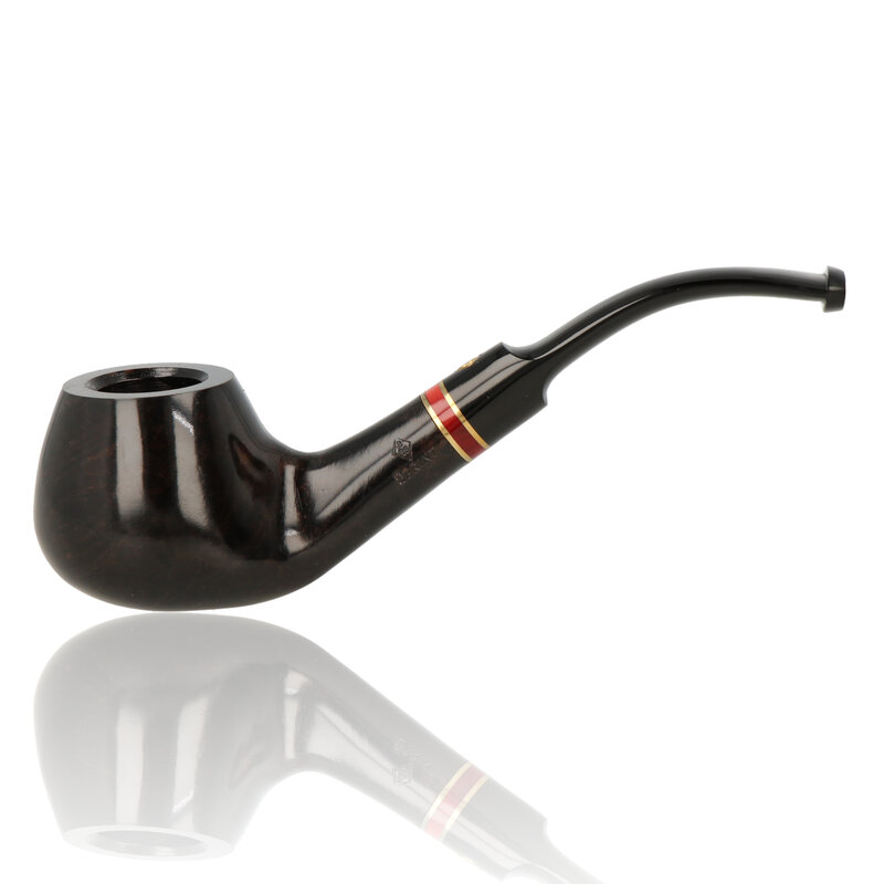 BBB Sprint Red This BBB Sprint Red 6 is a classic bent flat bottomed Apple, with a saddle stem. The bowl is finished in a unique deep brown with a hint of grey, which compliments the rich Brass and red bands in the stem. It is a good sized pipe with fairly thick briar walls to help prevent overheating while the modest overall dimensions help keep the weight down. The bore is smaller than you would expect for a pipe of this size, which is good for those who don't want a full bodied hour long smoke. The pipe is filtered with the metal condensing style filter system.