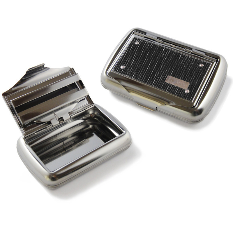 Tobacco tins don't need to be plain and boring. The roll up trade is venturing into the 21st century with new designs on tried and tested tins. These tins are designed to hold 25g (or 1oz in proper money) of tobacco with a modern black mesh decorative plate against a hard wearing, high polished chrome base. Complete with a spring clip paper holder.