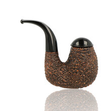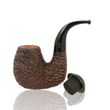 Rociatta Featuring a rather unique design, the Brebbia Rocciata showcases a sandblasted bent hornet shape made of aged briar with a removable acrylic saddle stem. The weathered and textured sandblast finish gives a good tactile feel and the shape sits lovely in the hand.
