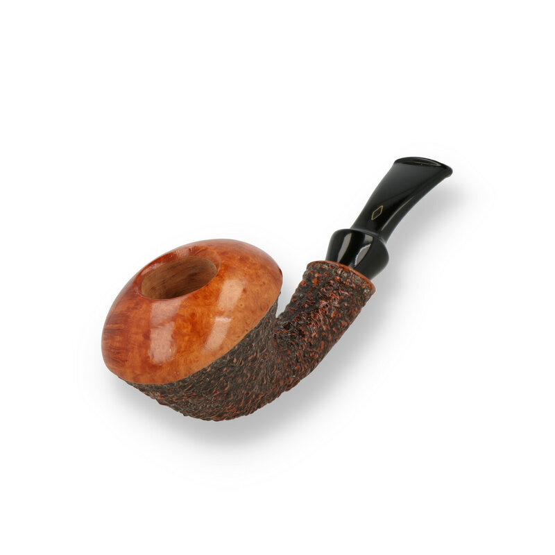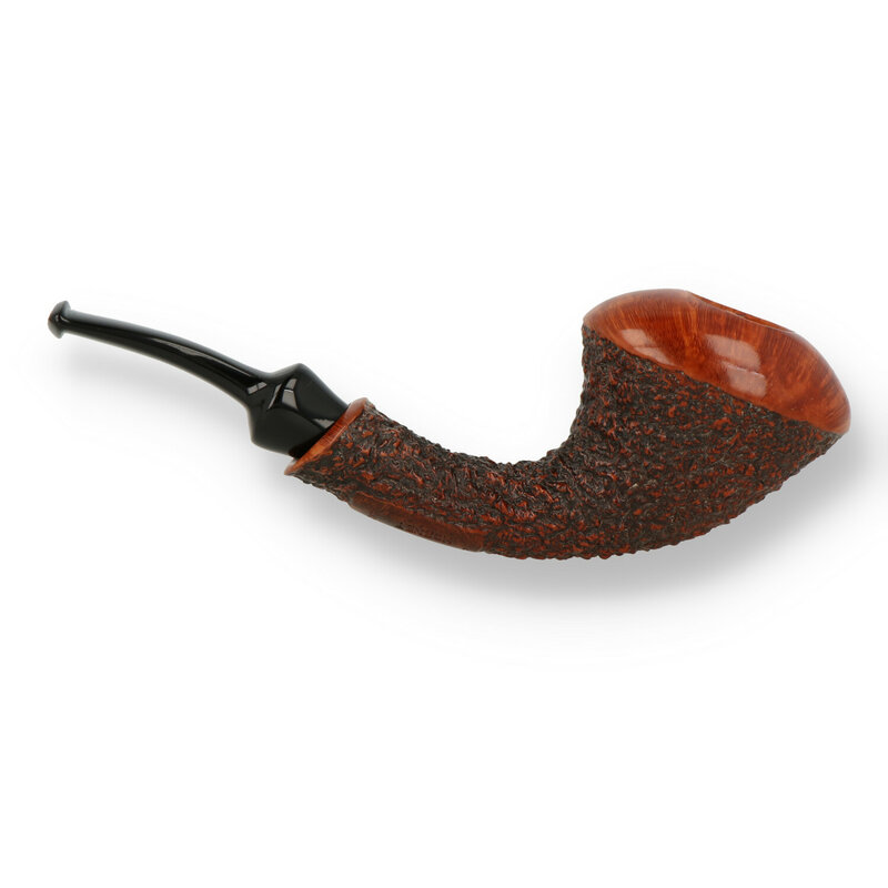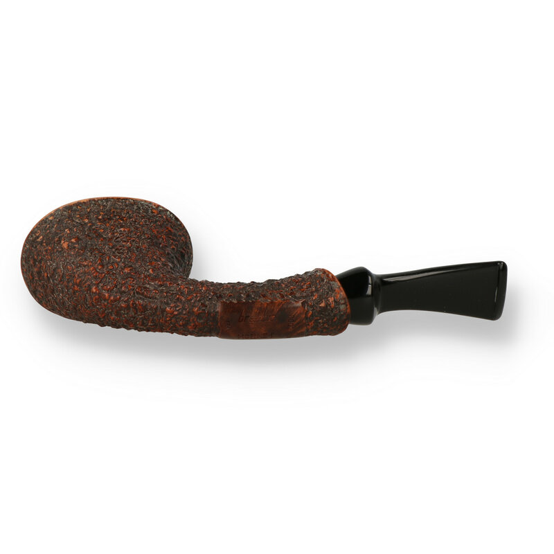 Rociatta Hornet Featuring a rather unique design, the Brebbia Rociatta Hornet showcases a sandblasted bent hornet shape made of aged briar with a removable acrylic saddle stem. The weathered and textured sandblast finish gives a good tactile feel and is contrasted with a smooth finish on the rim of the bowl and the shape sits perfect in the hand.