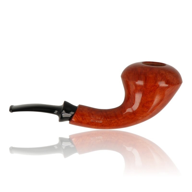 The Brebbia Hornet Select Smooth is a horn-shaped briar pipe with a polished finish. Fitted with a black acrylic stem and 9mm filter, it combines distinctive design with Italian craftsmanship.