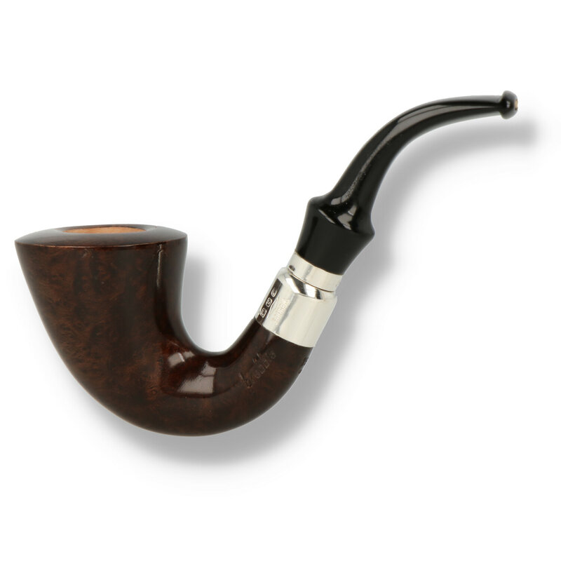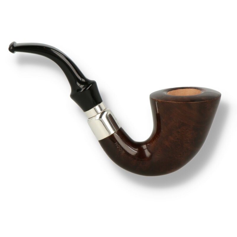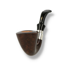 Pipa First 1997 Noce Smooth Featuring a classic calabash shape finished in a deep walnut stain that brings out the specially selected grain. Accented perfectly with a 925 sterling silver band and black acrylic tenon stem. This pipe sits perfectly in the hand and the beautifully smooth lacquer gives a lovely tactile feel that will make you want to reach for it again and again.