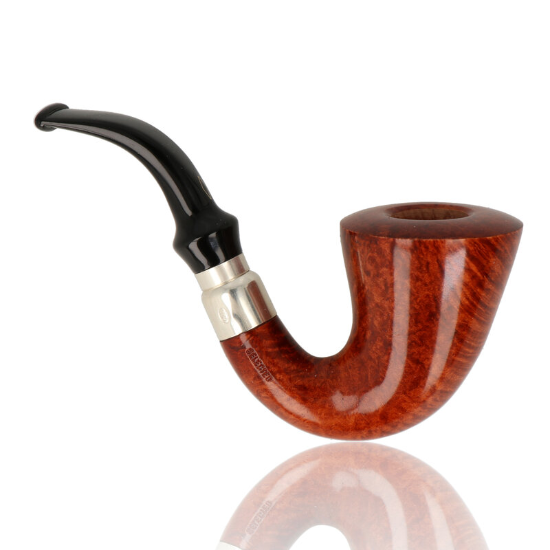 Pipa First 1997 Selected Smooth Featuring a classic calabash shape finished in a Light Natural stain that brings out the specially selected grain. Accented perfectly with a 925 sterling silver band and black acrylic tenon stem. This pipe sits perfectly in the hand and the beautifully smooth lacquer gives a lovely tactile feel that will make you want to reach for it again and again.