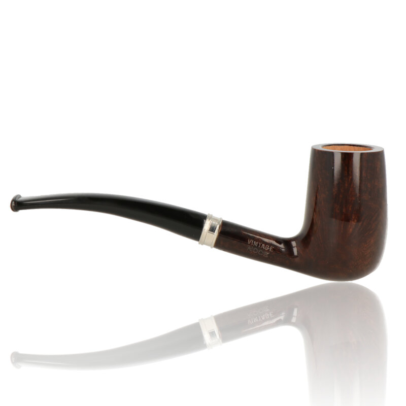 Pipa Vintage Noce 1057 Featuring an beautifully elegant deep fill tapered billiard shape finished in a rich walnut stain and a thick quality natural lacquer. The vintage selected 1057 is a wonderfully elegant curved pipe, fitting comfortably in the hand (and teeth) with a thin lightweight black acrylic stem accented with a double rimmed stainless steel band and MPB badge