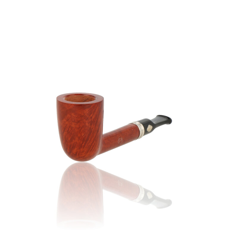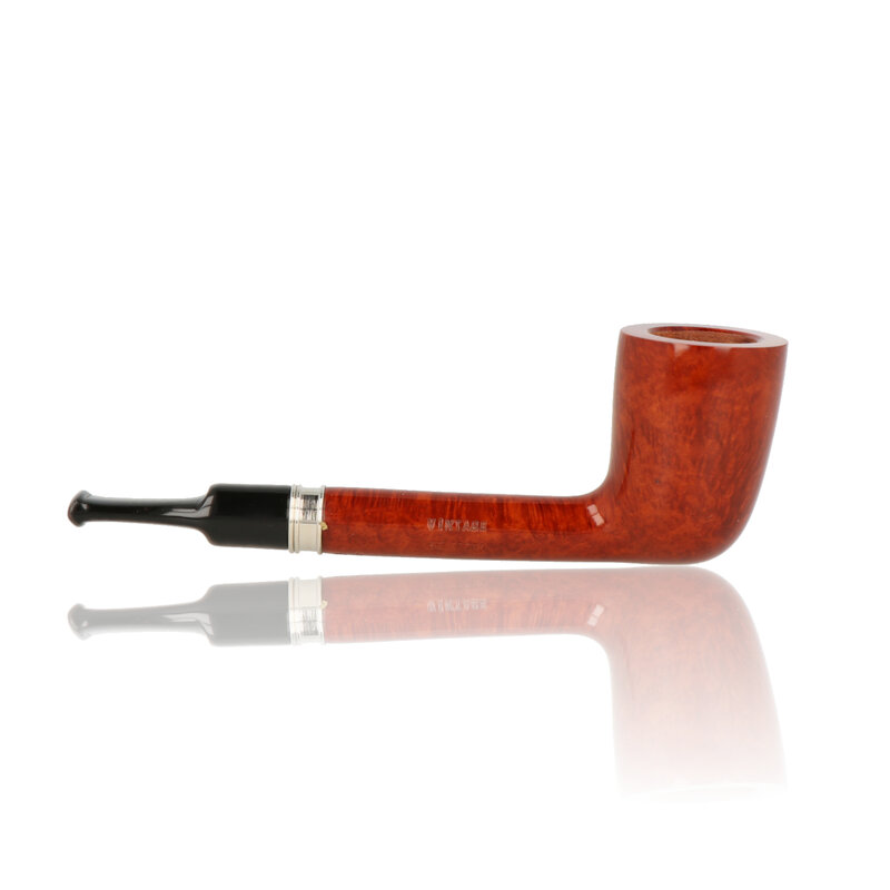 Pipa Vintage Selected 1055 Featuring an beautifully elegant Dublin Liverpool hybrid shape finished in a rich red brown stain and a thick quality natural lacquer. The vintage selected 1055 is a wonderfully petit straight pipe, fitting comfortably in the hand with a thin lightweight black acrylic stem accented with a stainless steel band and MPB badge