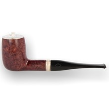 Sailing Amaranto While the proportions of the "1005" Billiard aren't far off from English territory, the lines are definitely Italian in nature, specifically around the lower bowl and heel. Fitting to this neo-classic approach to the shape, this example comes in the dark auburn finish and silver band of the MPB Sailing series, which, aside from the slashing pattern running along the center of the band, is itself quite old-school in nature. Comes with a compass engraved solid sterling silver cap in a presentation box.