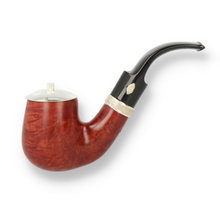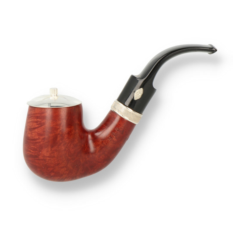 Sailing Amaranto While the proportions of the "6006" Full Bent Billiard aren't far off from English territory, the lines are definitely Italian in nature, specifically around the lower bowl and heel. Fitting to this neo-classic approach to the shape, this example comes in the dark finish and silver band of the MPB Sailing series, which, aside from the slashing pattern running along the center of the band, is itself quite old-school in nature. Comes with a compass engraved solid sterling silver cap in a presentation box.