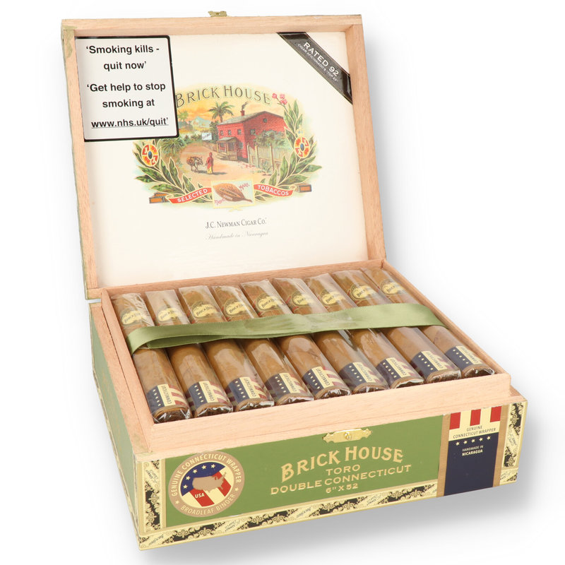 Brick House Double Connecticut The Double Connecticut is rolled with the same highly-acclaimed Brick House filler blend with a genuine Connecticut shade wrapper and Connecticut Broadleaf binder. Fewer and fewer cigars are being made with genuine Connecticut wrapper because many cigar manufacturers have found it to be more profitable to take Connecticut seeds and plant them elsewhere, like Ecuador or Honduras. J.C. Newman takes the use of genuine Connecticut tobacco by using it both in the wrapper and binder. The result of this combination is a very spicy and peppery rich flavour - one not only unlike regular Brick House - but one unlike any other cigar on the market today. Using both Connecticut Shade wrapper and Connecticut Broadleaf Binder is what makes this new Brick House Double Connecticut such a truly unusual and unique cigar.