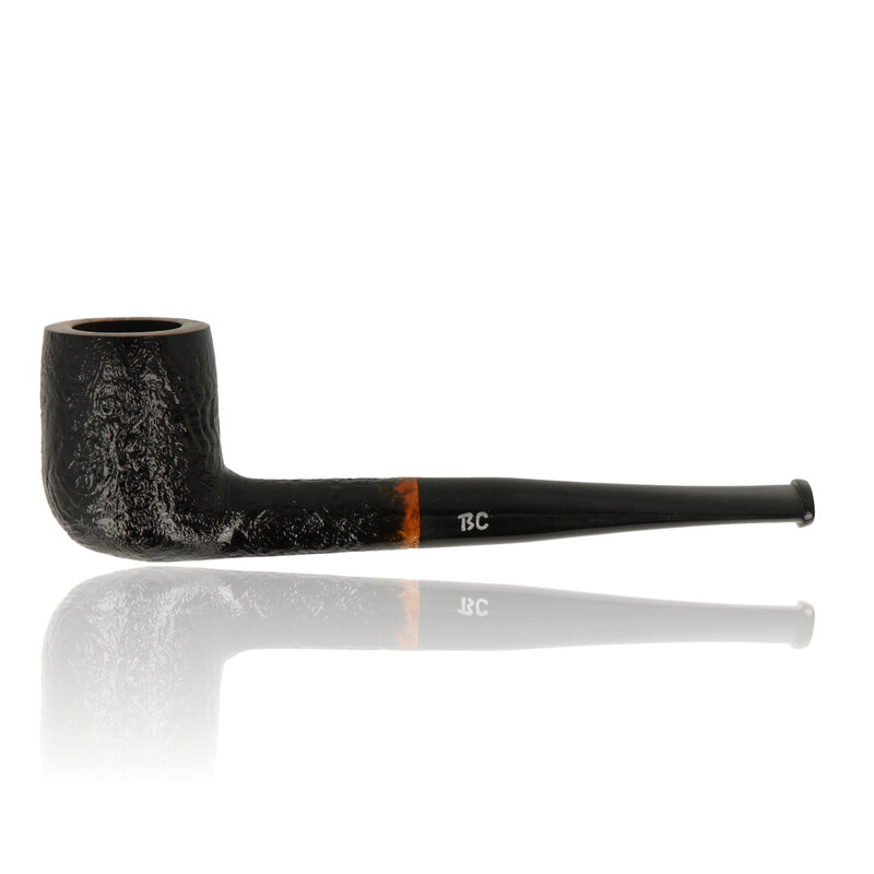 Butz Choquin Belami Sablee 102P: The Butz Choquin Belami Sablee 102P is a classic straight Billiard of smaller proportions. It’s rare to find quality pocket-friendly pipes today, as larger pipes are more cost-effective and in vogue. The Belami Sablee is a welcome addition, perfect for travel or those who prefer shorter, less intense smokes. Sandblasted and stained black on the main body, it has a smooth, reddish-brown finish on the rim and shank edge.