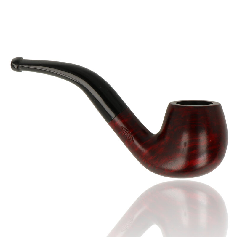 The Butz Choquin Belami Sablee 1303 is a classic, compact full-bent Billiard. Pocket-friendly pipes of quality are rare due to cost-effectiveness of larger pipes and recent trends. The Belami Sablee is a welcome addition, perfect for travel companions or those seeking shorter, less intense smokes. It features a red stain and a glossy, smooth finish.