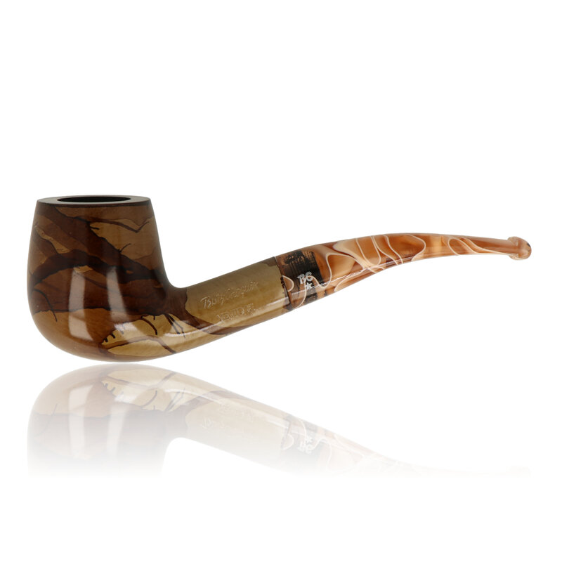 The Butz-Choquin Ventose Beige 1772 is a bent billiard briar pipe with a polished marbled beige finish. Featuring a matching acrylic stem and 9mm filter, it blends classic form with modern styling.