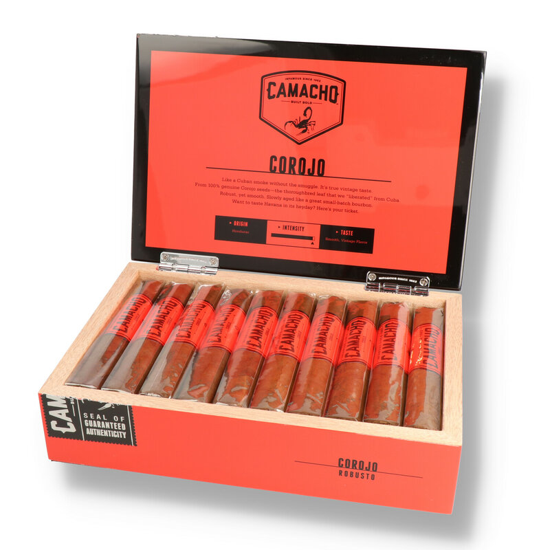 Camacho Corojo: One of the world’s only 100% authentic Corojo cigars, this top-rated stick is cultivated from genuine Corojo seeds straight from the fertile Jamastran Valley of Honduras. Crafted using the same premium fillers and wrappers.