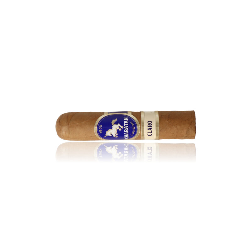 The Charatan Claro Half Churchill is a 4⅞” x 48 mild to medium cigar. Wrapped in a Nicaraguan claro leaf, it delivers smooth cedar, hay, and light sweetness. Supplied in a box of 24.