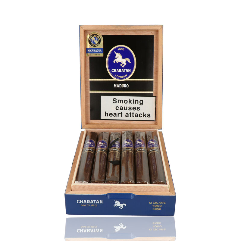 The Charatan London Maduro Toro is a medium to full-bodied cigar, measuring 6 inches by 50 inches. Wrapped in Nicaraguan maduro leaf, it offers a harmonious blend of cocoa, roasted coffee, and spice. This Toro is an excellent choice for those seeking a fuller smoking experience.