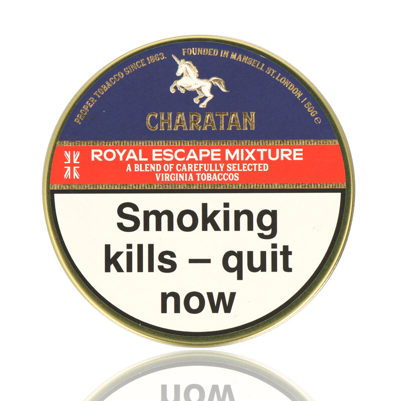 Charatan Royal Escape Pipe Tobacco: The Charatan Royal Escape Pipe Tobacco has been produced as a direct replacement for the delisted Dunhill Royal Yacht Pipe Tobacco. Truly, a high quality tobacco. Highest quality bronzed Virginia leaves are carefully conditioned and are added to rich, heavy-bodied Virginias, noted for their aroma. A unique flavour is added t the final blend to enhance the subtle and piquant aroma. This mixture is ideal for smoking when in company or amongst friends when sailing your yacht.
