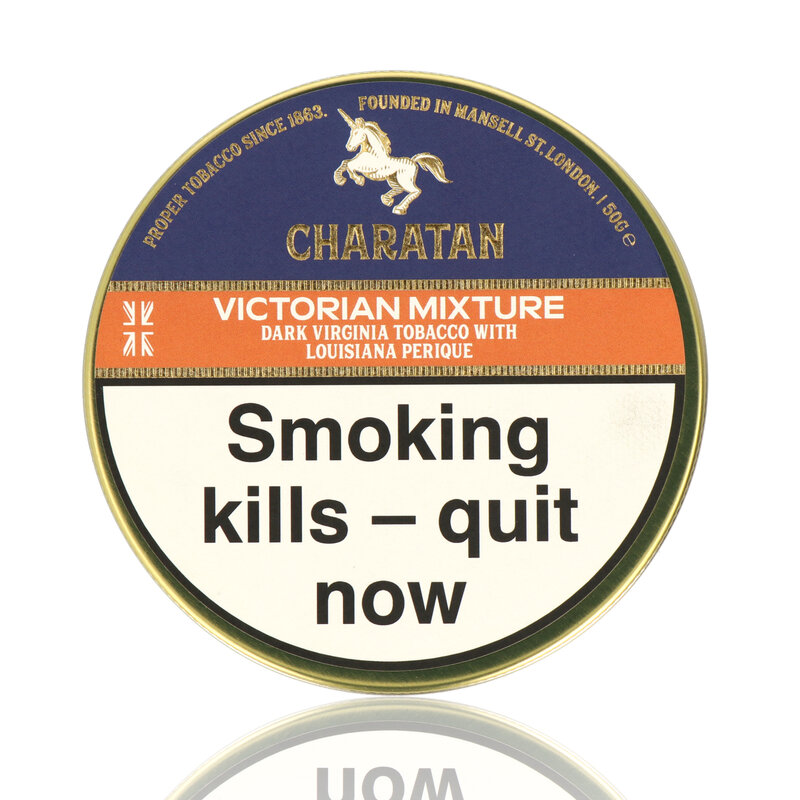 Charatan Victorian Mixture Pipe Tobacco: The Charatan Victorian Mixture Pipe Tobacco has been produced as a direct replacement for the delisted Dunhill Elizabethan Pipe Tobacco. This blend has a distinctive flavourful blend of pressed, darkened tobaccos with Perique added for character. A rich flavoured blend of light and dark Virginia tobaccos with a touch of Louisiana Perique for added zest. This air cured, ribbon cut tobacco is medium to strong in strength. Victorian Mixture has a mild flavouring and a medium to full taste.