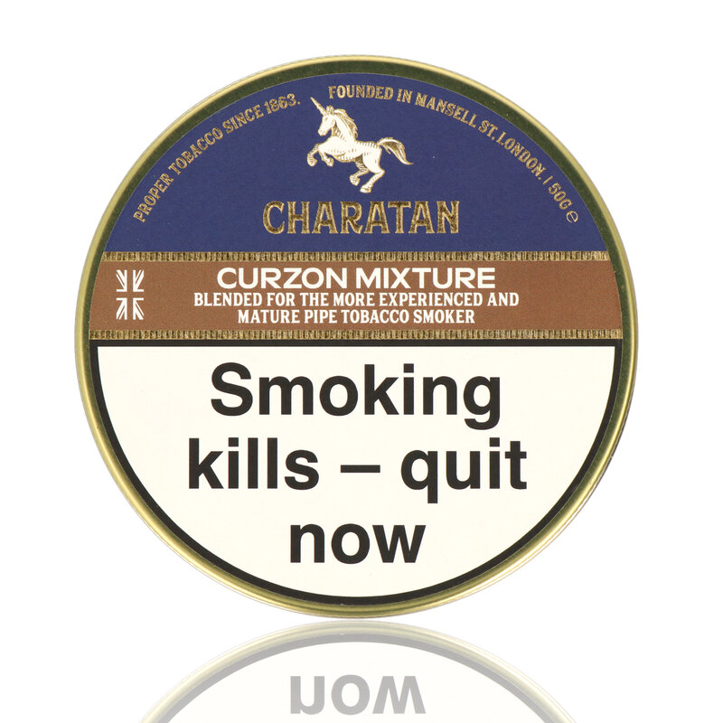Charatan Curzon Mixture Pipe Tobacco: The Charatan Curzon Mixture Pipe Tobacco has been produced as a direct replacement for the delisted Dunhill Durbar Pipe Tobacco. Whilst Viceroy of India, Lord Curzon was responsible for the spectacular 1903 Delhi Durbar celebrating the accession of Edward VII as Emperor of India. This name celebrates te heritage of this blend which is designed for the more experienced and mature pipe smoker and has a composition of Virginia, Latakia and Oriental. It has a well balanced smooth, dark brown smoke with floral and tannin tones. The blend is remarkably close to the former Dunhill Durbar.