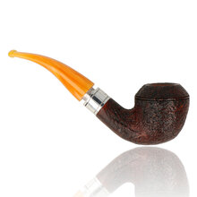 The Charles Rattray’s Monarch Sandblast 178 Yellow is a delightful example of the bent Rhodesian pipe. It’s that classic double-beaded bowl with a low centre of gravity and a comfortable curve. This version is made from deeply sandblasted briar, showing the rough texture of the grain underneath a dusky finish. It’s then topped with a bold yellow acrylic stem that adds a pop of colour without being too flashy.