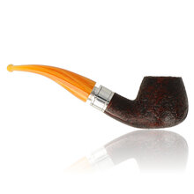 The Charles Rattray’s Monarch Sandblast 4 Yellow is a fun twist on the classic brandy shape. It has a rounded bowl that flares at the bottom like a well-loved cognac glass. The sandblasted finish shows the briar’s natural grain in bold detail, while the bright yellow stem adds a modern touch to a timeless design.
