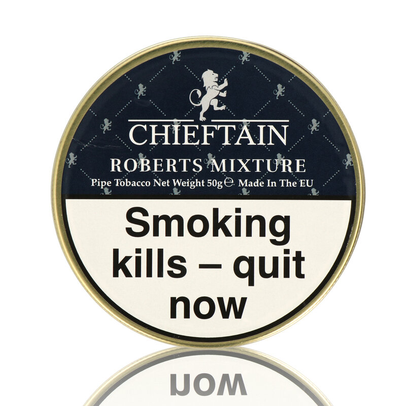 Chieftain Roberts Mixture Pipe Tobacco Roberts Mixture commemorates two of Scotland's most famous sons, Robert the Bruce and Robert Burns. A proper medium-bodied mixture with plenty of English character composed of the finest grassy Virginia, woody Maryland and nutty Burley tobaccos with just a hint of Latakia. This is a very well rounded smoke with just the right amount of latakia that adds a touch of spiciness without destroying your sense of taste and smell.