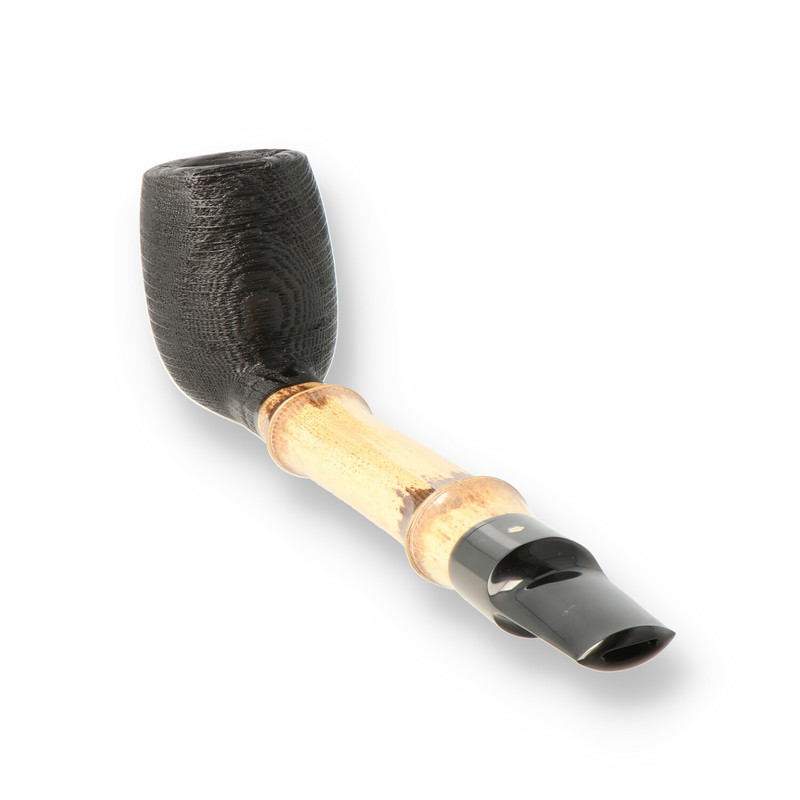 Morta Bulldog This absolute behemoth of a pipe is quite possibly one of the largest pipes to cross our shelves. The English Bamboo was grown in Chris's very own garden and was the inspiration for this incredible pipe. The large bog oak bowl has a stunning ring grain around the circumference of the bowl and is finished with a short black acrylic saddle stem. This pipe needs to be seen in the flesh to be truly appreciated