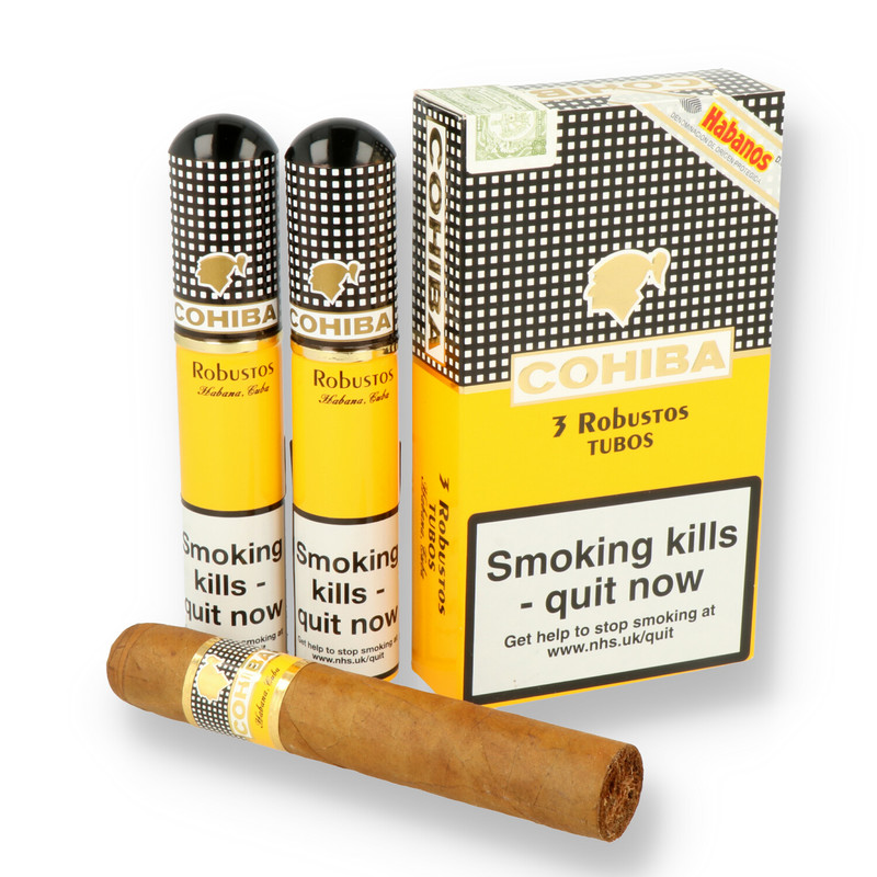 Individually Tubed The Cohiba Robusto Tubos cigars are individually packaged in a premium, cedar lined aluminium tube, which just oozes quality. As well as being decorative the Cedar lined tube also helps preserve your cigar for up to a year without the use of a humidor meaning they are always ready for that special occasion that a cigar of this quality is designed to represent.