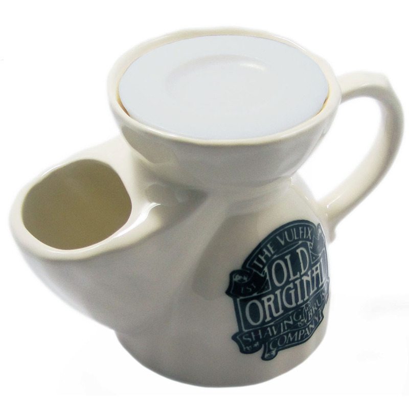 Vulfix Old English Ceramic shaving jug with self draining soap dish.