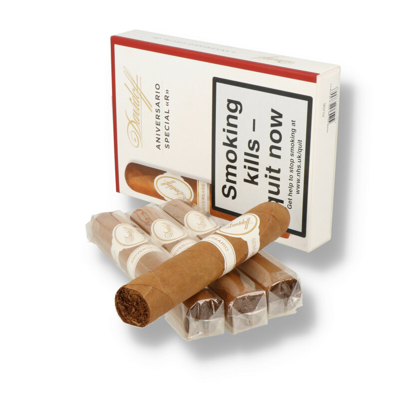 Davidoff Aniversario Special R: The Davidoff Aniversario is constructed with three different Dominican Republic filler tobaccos with a Piloto Seco binder, and an Ecuadorian Connecticut wrapper which gives a spicy but earthy taste that develops into rich woody earthy aromas and bursts of pepper, roasted nuts and cedar. The aniversario are a must have for any celebration and pair beautifully with an aged single malt or a vintage champagne.