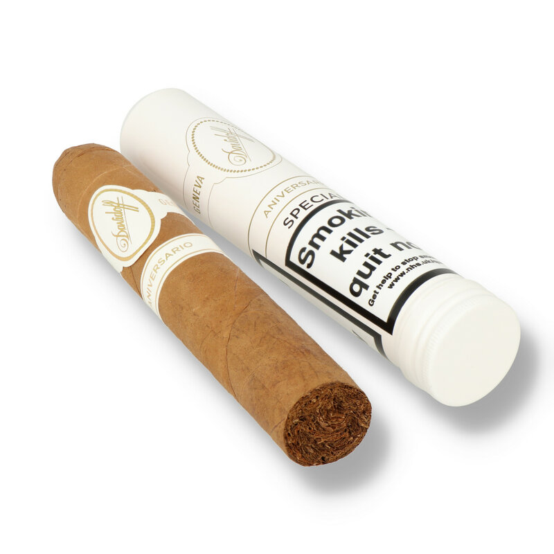 Aluminium Hydration Tube: The Davidoff Aniversario Tubos range are supplied in a unique Cedar lined Aluminium tube which help protect the cigars delicate wrapper and retain the moisture in the cigar. The Cedar lining helps develop the flavour meaning your cigar can be ageing for a few years while you await that special occasion. Unique to Davidoff the tubes have a slit down one side. Twist the inner tube until the slits line up for storage in the humidor and your Cigar is able to breath and age without having to remove it from the tube.
