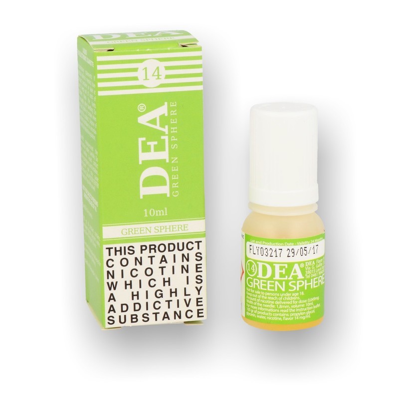 DEA Green Apple Eliquid The DEA Green Apple is one of the most popular fruity flavours in the DEA line up as the freshness of green apple just floats out as you break the seal on a bottle. A pleasant and fresh fruity taste, which enhances the typical properties of this fruit.