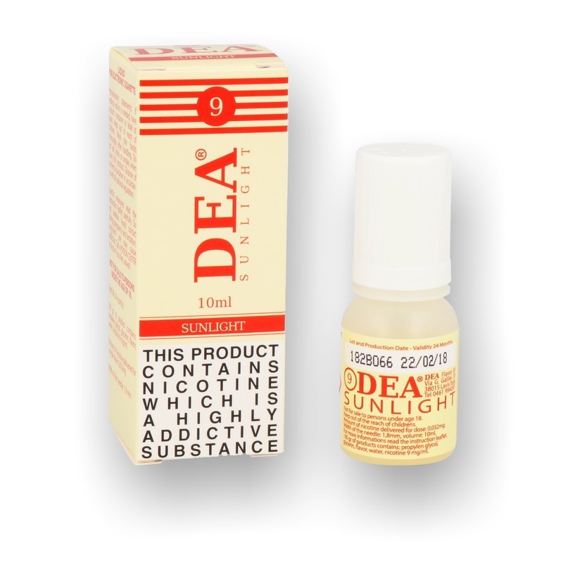 DEA Sunlight The DEA Sunlight Eliquid derives it's flavour from natural Tobacco leaves for a true Tobacco flavour without the harmful effects. This fluid has been specially formulated and filtered by the expert blenders at DEA to prevent any type of sedimentation in the atomiser so is very e-cig friendly.