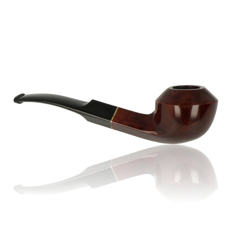 The 36 is a Bulldog shaped bowl with a delicately curved square shank and black acrylic saddle stem. A design classic, the thick walls help draw heat away from the burn to provide a cooler dryer smoke. The pipe is finished in a dark stain and brass band for a classically elegant look.
