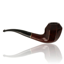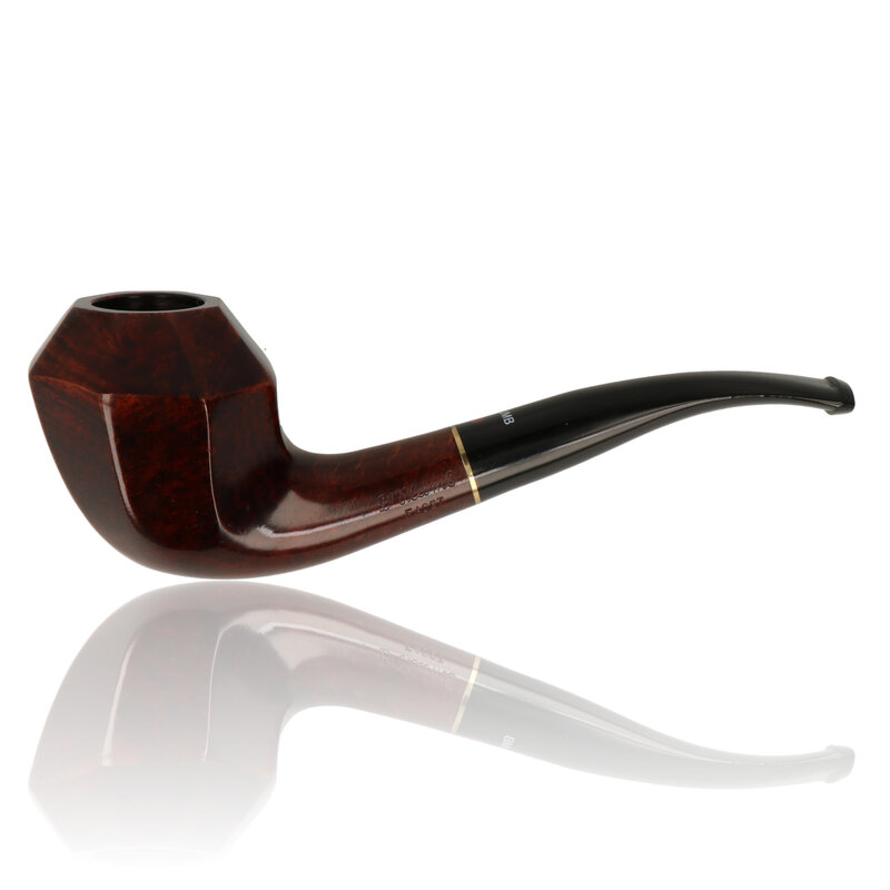 The Facet 10 is a curved Dublin with diamond like carving on the bowl. The bowl is finished in a deep red-brown stain and tapered Vulcanite stem and brass band.