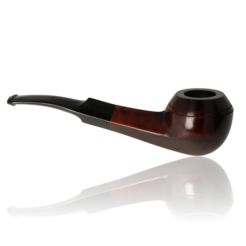 The Dr Plumbs 58410 is a traditionally shaped and sized, London made, briar pipe polished with a natural, deep brown tint. As the name gives away it is a smooth, Bulldog shaped Briar bowl with a square shank and curved stem. The length of the stem and thicker briar wall prevents overheating therefore providing a cooler smoother smoke. The Twinbore is named for its distinctive twin bore construction, which features two air channels or "bores" running through the stem. This innovative design promotes a cool and even smoke, ensuring a consistently enjoyable smoking experience. The Twinbore series often offers a variety of shapes and finishes to cater to individual preferences. Whether you prefer a classic billiard or a more unique design, there's likely a Twinbore pipe that suits your taste.
